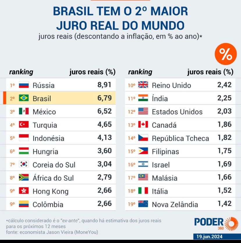 Mais Alta Taxa de Juros Reais do Mundo -abaixo apenas da Rússia-