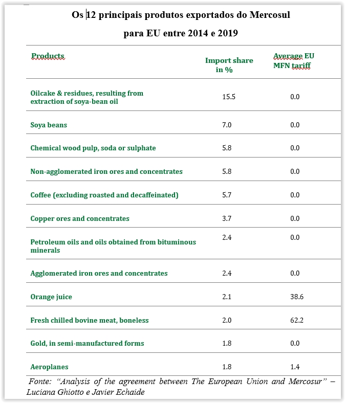 No que tange a outros produtos primários que estão fora das cotas, é preciso observar que os mais significativos já entram na UE com tarifa zero. É o caso dos produtos com base na soja e o café, além dos minerais.