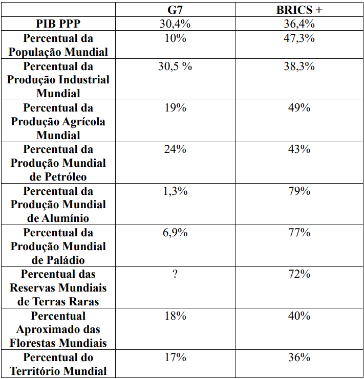 Essa tabelinha revela a dimensão do BRICS expandido. O novo bloco é uma grande potência econômica, industrial, agrícola, energética, mineral e ambiental. E isso é só o começo, pois há muitos outros países candidatos, que poderão ainda entrar.
