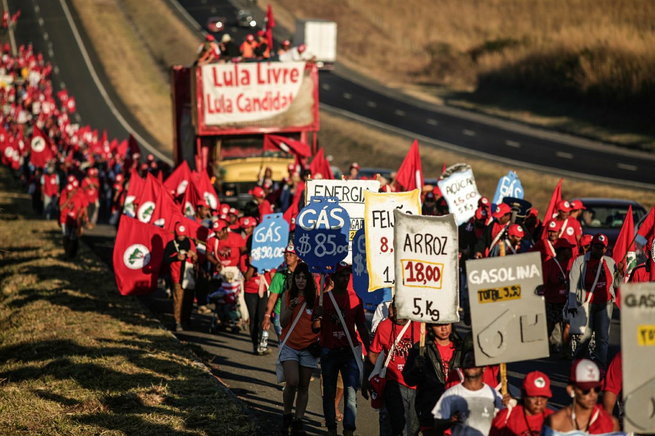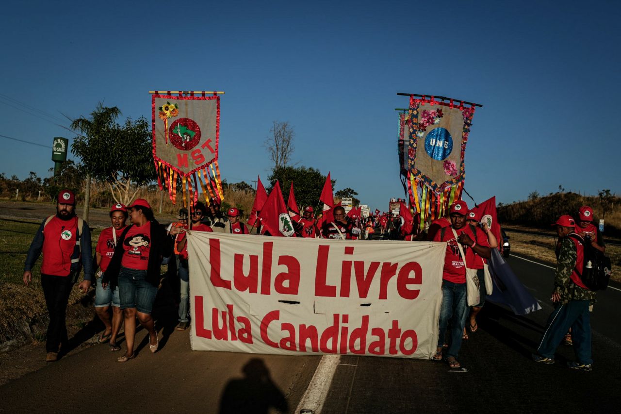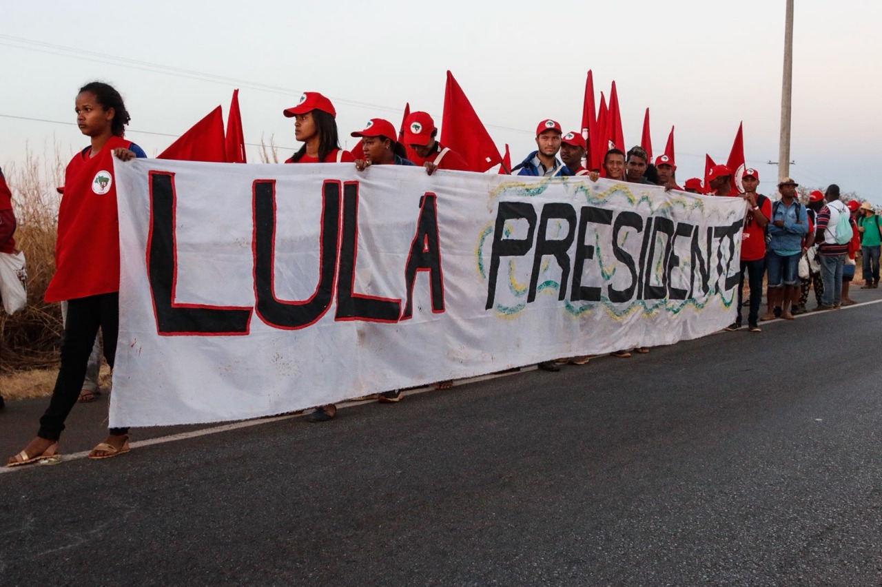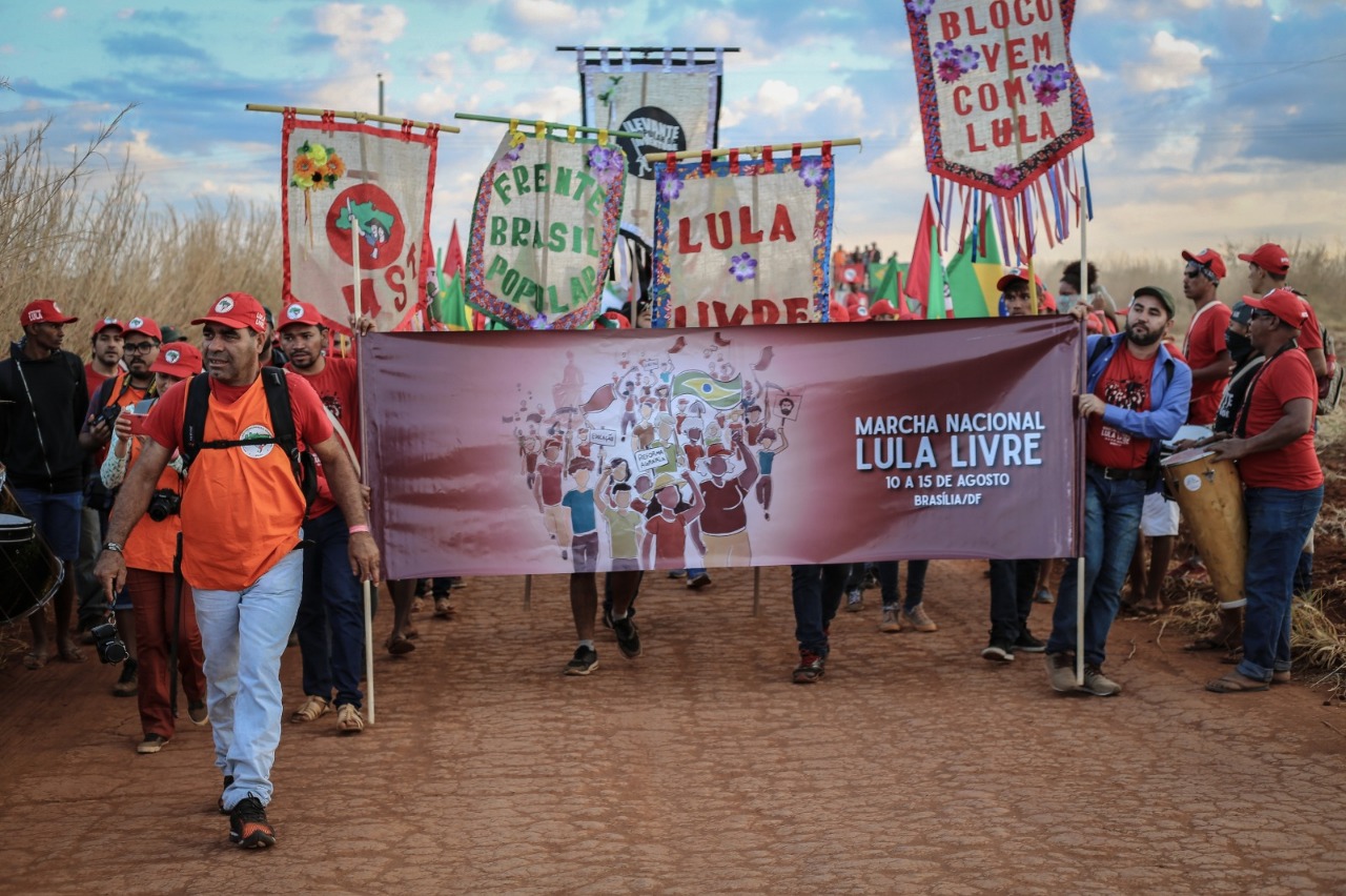 Nas fileiras da Coluna Ligas Camponesas entre músicas, gritos de ordem e muita animação as faixas pedem por Lula Livre e pelo direito dele ser candidato.