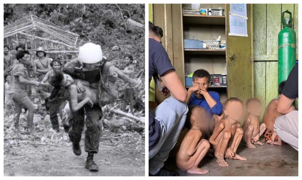 Não precisei ver as imagens porque eu as vivi. Carreguei em meus braços os corpos de adultos e crianças que chegavam em voos contínuos de helicópteros na aldeia Paá-Piu vindos de diferentes aldeias. Eles pesavam menos de 30 kg. Não pareciam mais humanos. Eram esqueletos que respiravam com dificuldades.