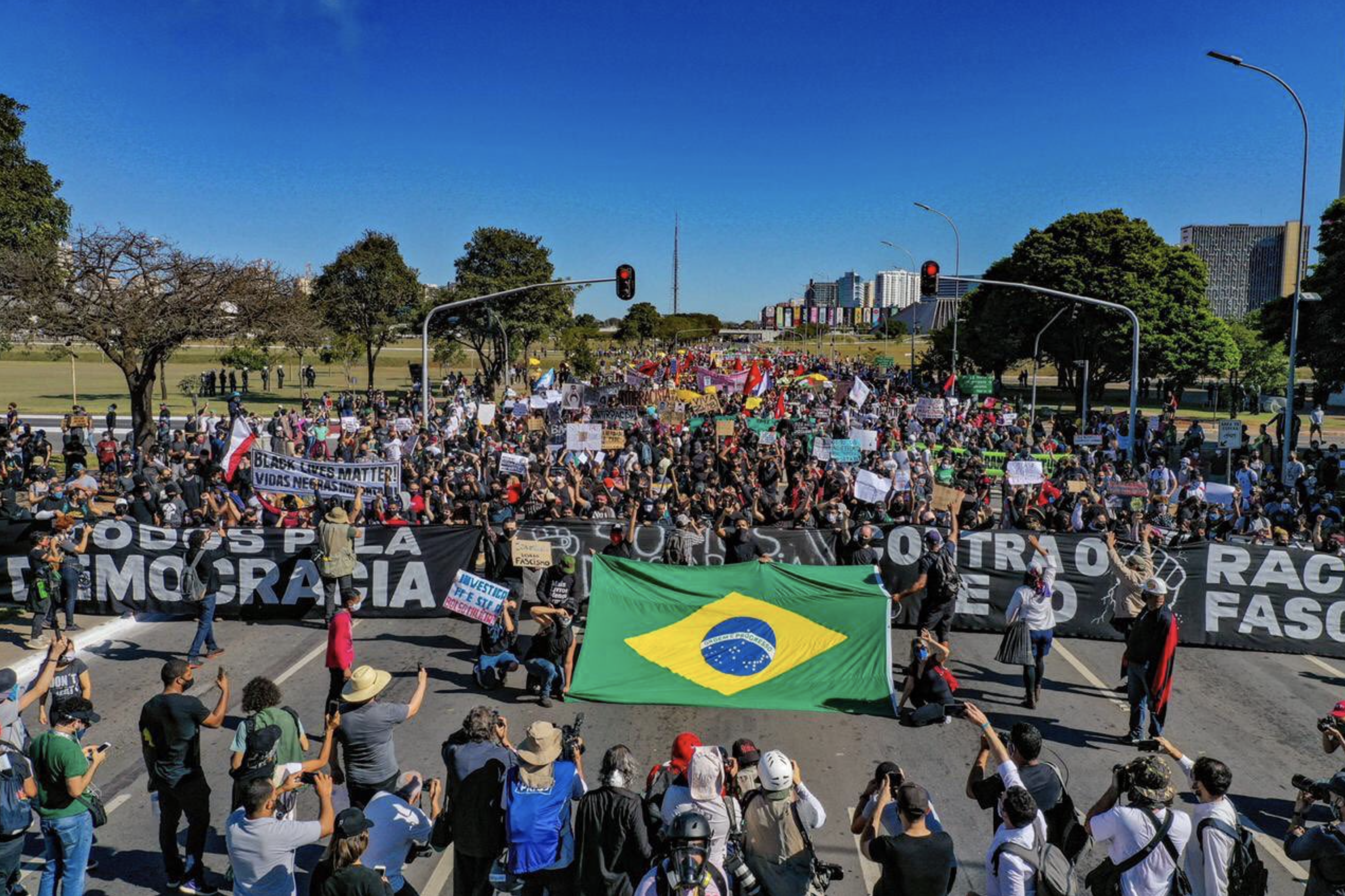 Foi com estes versos adaptados do sucesso Vou Festejar, de Beth Carvalho, manifestantes saíram às ruas hoje de manhã em Brasília para pedir a derrubada de Jair Bolsonaro e protestar contra o racismo.