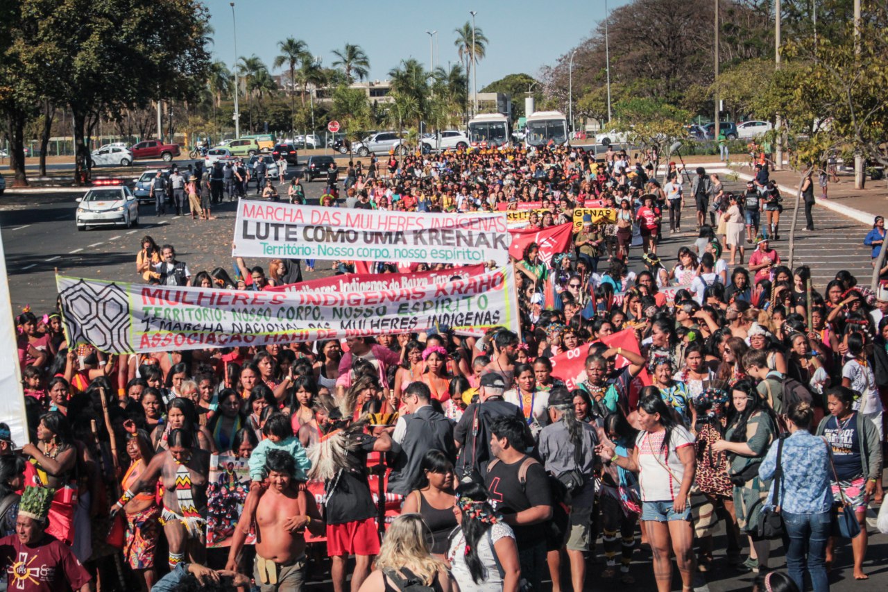No dia 09 de agosto de 2019, Dia Internacional dos Povos Indígenas, nós, mulheres indígenas, partimos dos nossos territórios rumo à Brasília. Somos cerca de 2.000 mulheres indígenas trazendo um número infinito de vozes de que lutam em defesa de seus territórios. Estamos aqui na capital federal ressignificando a nosso história com nosso protagonismo e empoderamento na realização da I Marcha de Mulheres Indígenas, cujo tema afirma e fortalece a nossa identidade – “Território: nosso corpo, nosso espírito”.