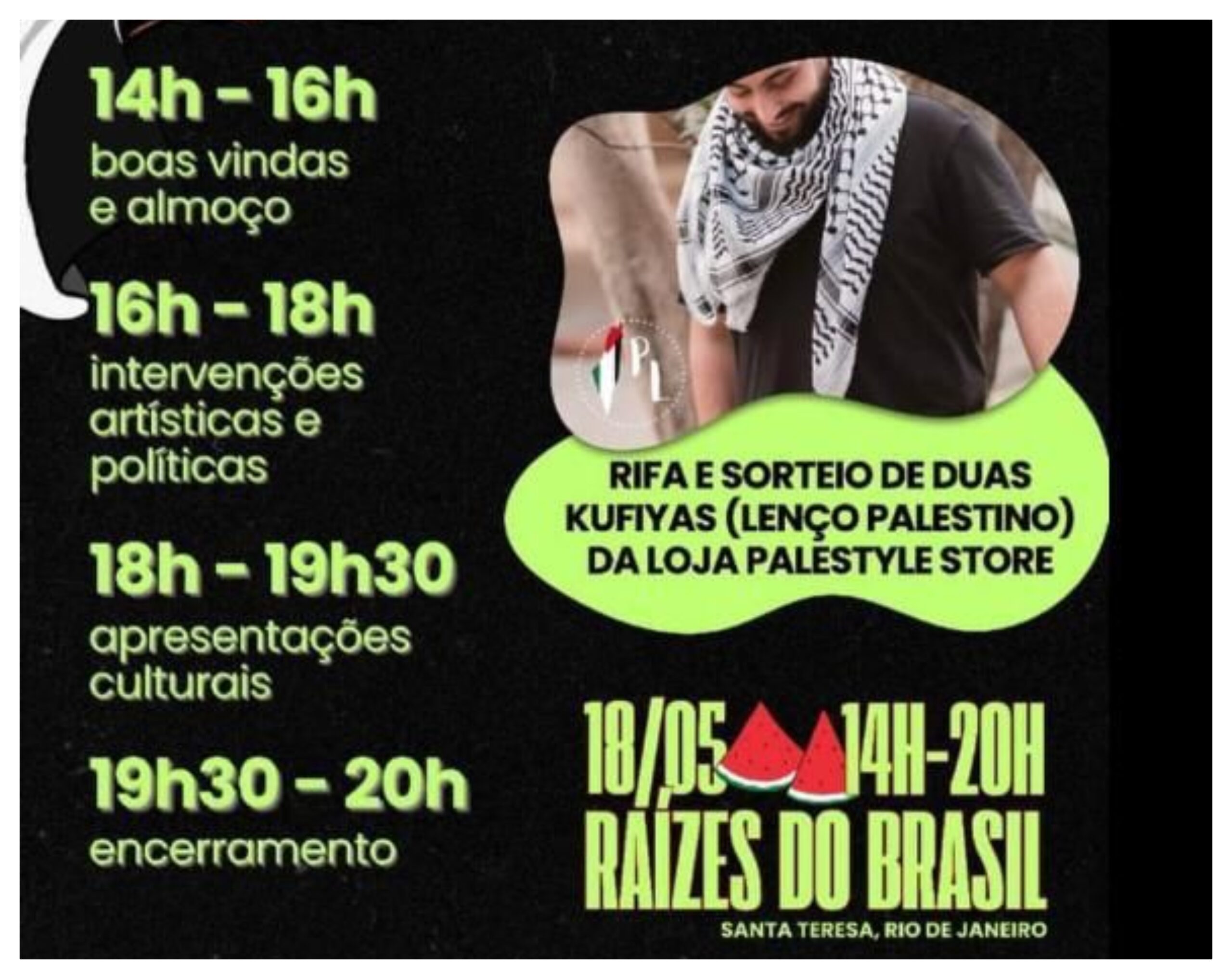 Neste sábado, 18 de maio, acontece na cidade do Rio de Janeiro o Festival Palestina Terra Livre.