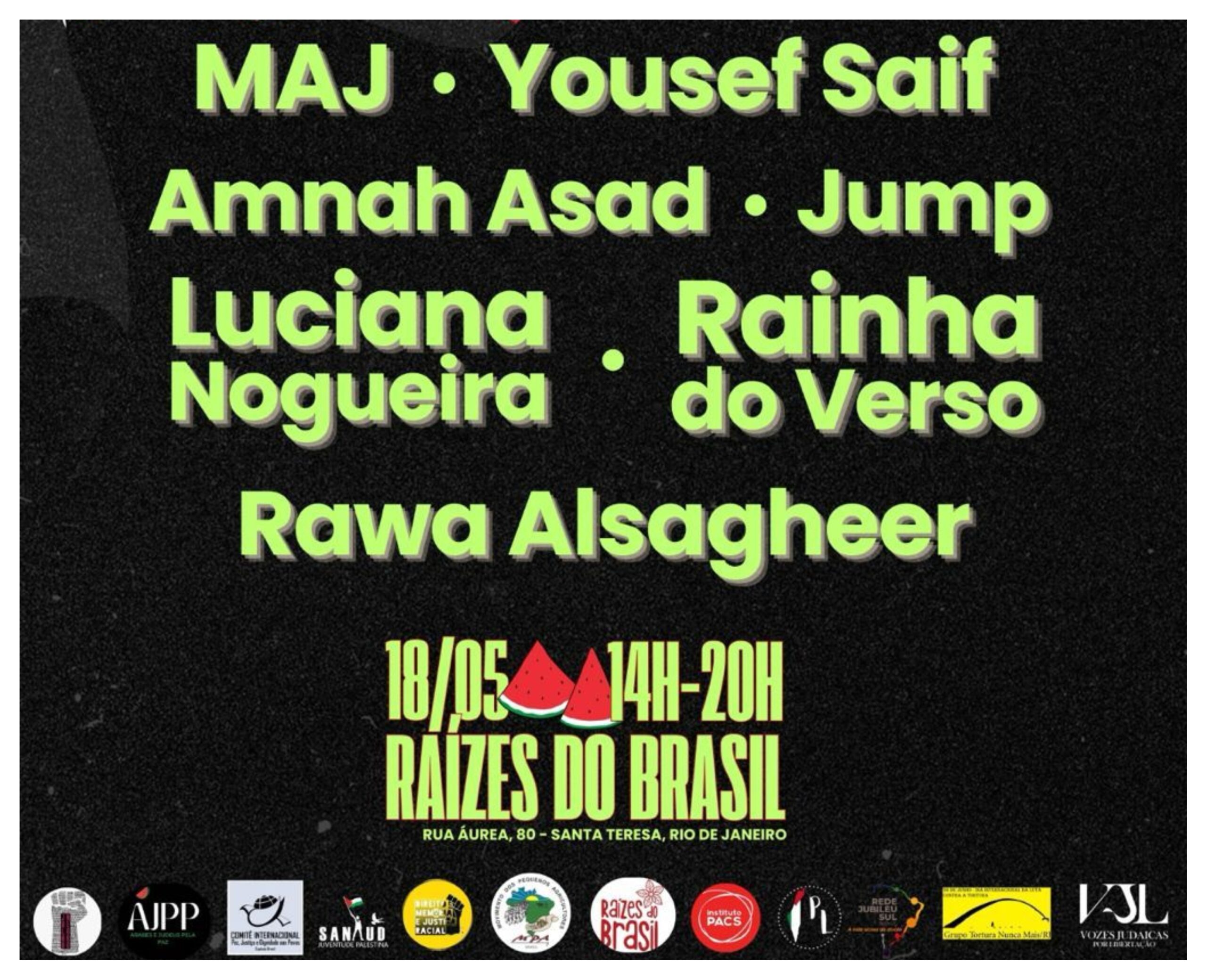 MAJ — Poeta, cantora e compositora; expressa em sua arte a vivência como filha de pai palestino e mãe brasileira.