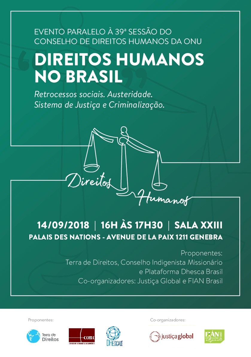 Na próxima sexta-feira (14/9), organizações da sociedade civil brasileira denunciarão, em evento paralelo à 39ª Sessão do Conselho de Direitos Humanos da ONU, em Genebra (Suíça), os retrocessos relativos à garantia de direitos humanos no Brasil e a seletividade, os privilégios e a captura corporativa e ideológica do Sistema de Justiça.