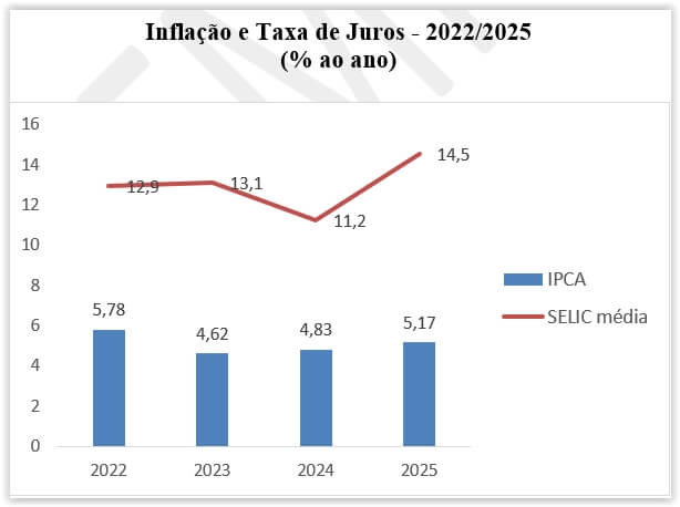 Não se tratava daquilo que os manuais de macroeconomia qualificam como sendo uma “inflação de demanda”. Isto pode ser percebido no gráfico abaixo. A taxa de juros segue nas alturas e o crescimento dos preços se mantém entre 4,6% e 5,2%. Ou seja, nada muito preocupante e que não foi afetado pela SELIC elevadíssima.