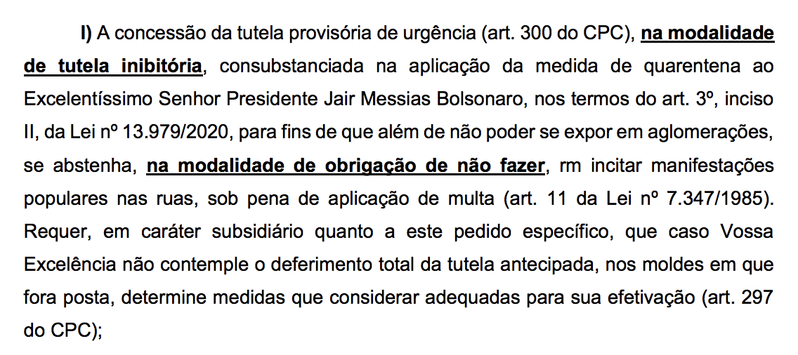 PDT quer Bolsonaro em quarentena e sem incitar manifestações públicas; íntegra da ação