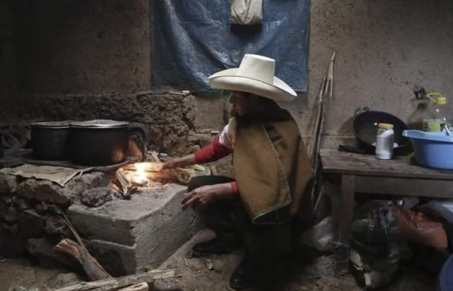 Castillo aparece numa casa simples, acendendo o fogão a lenha.