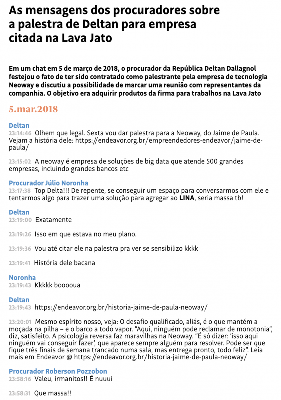Mais que isso, Deltan queria associar a empresa à operação e chegou a gravar um vídeo como se fosse “garoto propaganda” da Neoway.