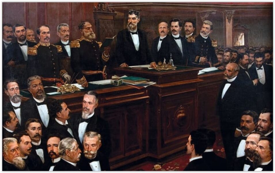 Nossa república nasce cem anos após a revolução francesa do iluminismo, dos enciclopedistas, da guilhotina e do colonialismo persistente. Sem povo nas ruas, porém.