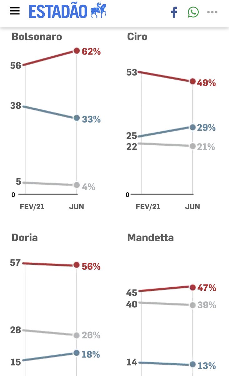 O levantamento confirma o que entrevistados disseram ao Viomundo recentemente: o pesquisador Marcos Coimbra afirma que o ex-presidente Lula tem consistentemente batido Bolsonaro em eventual segundo turno; a economista Leda Paulani afirma que o cenário econômico é marcado pela incerteza; o cientista social Quartim de Moraes acha que Bolsonaro não tem popularidade suficiente para arrastar os militares a uma aventura militar em 2022, embora ela vá certamente espernear se perder a eleição.