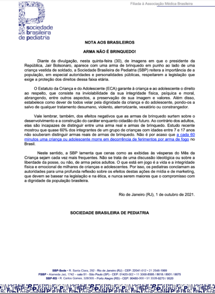Sociedade Brasileira de Pediatria: Uma criança ou adolescente morre por hora por ferimentos de armas de fogo