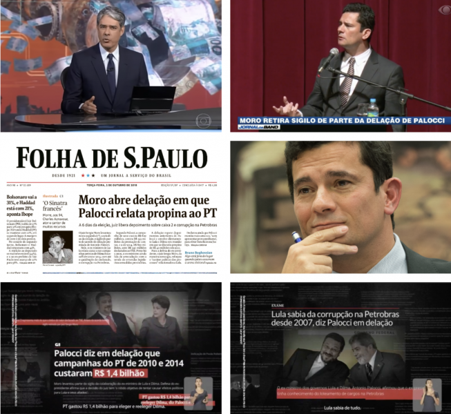 O juiz Sergio Moro, futuro ministro da Justiça do neofascista Jair Bolsonaro, divulgou a delação de Antonio Palocci faltando seis dias para o primeiro turno das eleições de 2018.