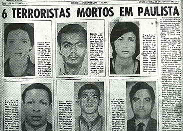 Ali, num infeliz acaso para o traidor, ele passa diante de uma parede onde se expõem com fotos os 6 assassinados na Granja de São Bento em Pernambuco. Ali, diante de dois planos, com imagens da imprensa que publicava o que a repressão mandava, como aqui.