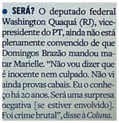 Problema mesmo é conhecer Brazão “há 20 anos” e ficar “negativamente surpreso” com a, digamos, hipótese dele ser mandante de um crime.