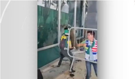 Vidro é quebrado durante invasão ao STF por terroristas — Foto: Reprodução Globonews