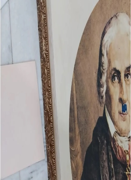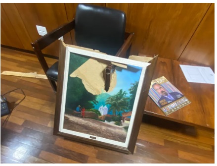 Quadro vandalizado por bolsonaristas terroristas — Foto: Reprodução