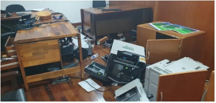 Equipamentos eletrônicos e móveis destruídos por bolsonaristas terroristas no Palácio do Planalto — Foto: Reprodução