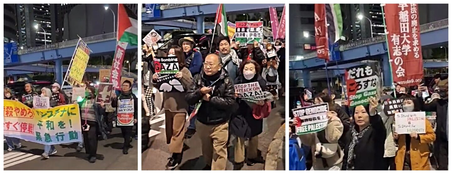 Enquanto isso, no mesmo 29 de novembro, 1.200 pessoas marcharam em Tóquio, no Japão, pedindo  cessar-fogo e o fim dos ataques de Israel a Gaza e Cisjordânia.