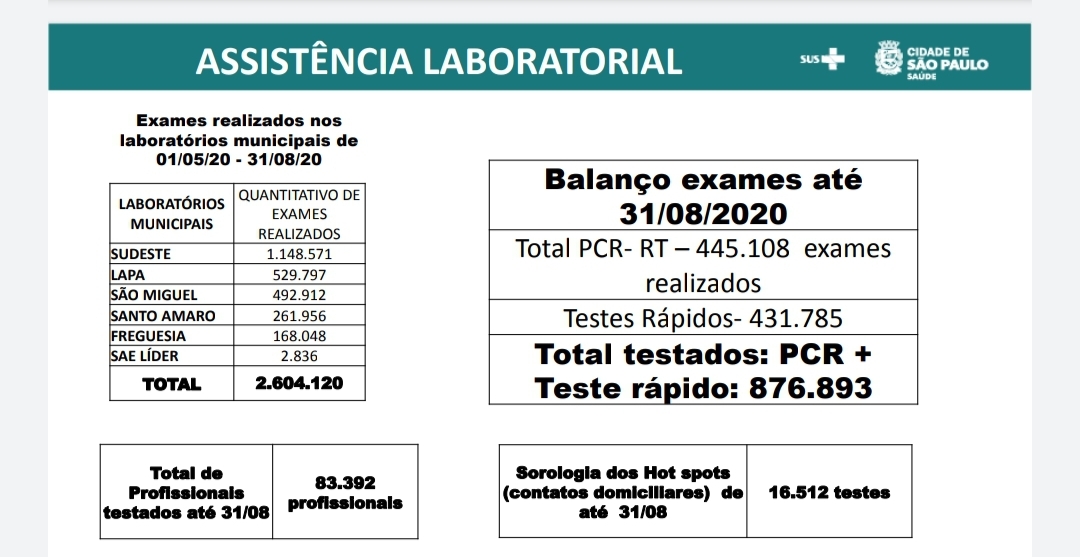 Mesmo porque o protocolo em São Paulo é testar somente pessoas com sintomas de desconforto respiratório em situação emergenciais.