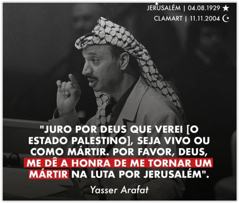 Em 11 de novembro de 2004, há exatos 17 anos, Arafat deixava este plano para se tornar definitivamente um mártir.