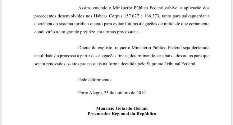 pelo MPF pedindo a nulidade do processo a partir das alegações