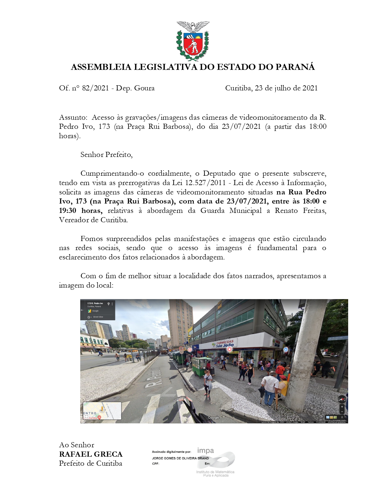 PS do Viomundo: No mesmo dia, com base na lei de Acesso à Informação, o deputado estadual Goura (PDT-PR) solicitou ao prefeito de Curitiba, Rafael Greca, as imagens das câmeras de videomonitoramento situadas na Praça Rui Barbosa.