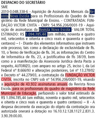 Ela lê criteriosamente o Diário Oficial paulista, para recolher negócios como este, em que a Prefeitura de São Paulo compra, sem licitação, revistas da Editora Abril: