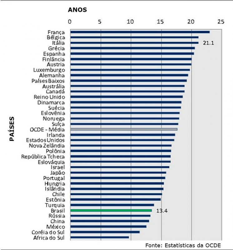 Segundo o estudo Expectativa de Duração de Aposentadoria em Anos, da Organização para a Cooperação e Desenvolvimento Econômico (OCDE), de 2014, o Brasil é um dos países em que os aposentados menos usufruem o tempo do seu benefício.