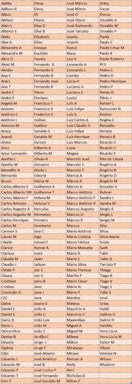 Adotamos o primeiro nome. Como há apoiadores com o primeiro nome igual, incluímos a primeira letra do sobrenome.
