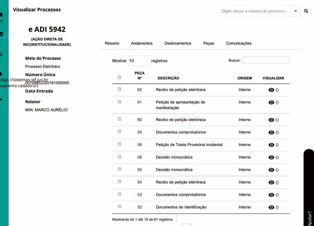 O movimento que até esse horário consta é a decisão do Ministro Marco Aurélio, item 56.
