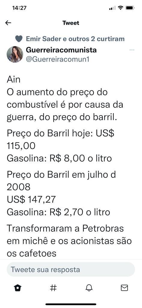 “Os combustíveis já foram responsáveis por praticamente metade da inflação do ano passado. Em 2021 a Petrobrás vendeu petróleo e produtos derivados pelos maiores preços de sua história, como apontam os demonstrativos financeiros da companhia, inclusive gerando lucro acima dos R$ 100 bilhões. Temos muito petróleo e um grande parque de refino e não precisamos ser reféns dos preços internacionais. A Petrobrás tem condições de segurar os preços em prol da população brasileira, sem que isso lhe gere prejuízo”, afirma Eric Gil Dantas, economista do OSP e do Instituto Brasileiro de Estudos Políticos e Sociais (Ibeps).
