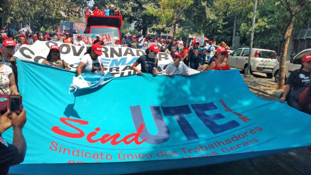 Na manhã desta sexta-feira, 20/09, o Sindicato Único dos Trabalhadores em Educação de Minas Gerais (Sind-UTE/MG) paralisou totalmente as atividades e participou do Ato Contra a Destruição do Brasil e de Minas Gerais, na Praça Afonso Arinos, em Belo Horizonte.