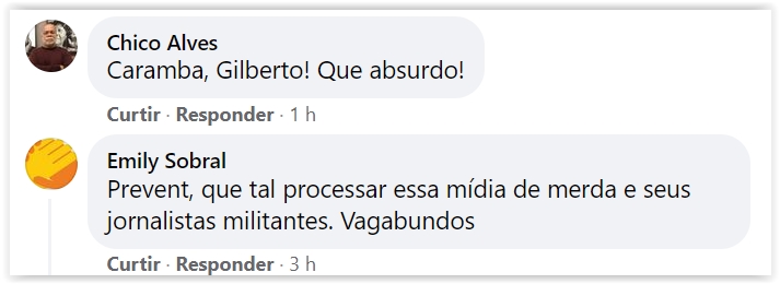 Lamentavelmente, teve quem ficasse ao lado da ganância da empresa inescrupulosa, como Emily Sobral, que sugere à Prevent “processar essa mídia de merda e seus jornalistas militantes. Vagabundos” (veja abaixo)