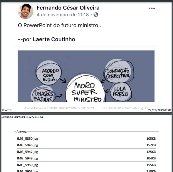 O anônimo escreveu que os policiais “manifestam em suas redes sociais o desapreço e a lealdade [sic] ao atual governo, escarnecendo a figura tanto do presidente da República quanto do ministro de Estado da Justiça e Segurança Pública [Moro]”.