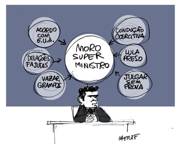 A charge era crítica à conduta pregressa do ex-juiz e então futuro ministro da Justiça, Sergio Moro.