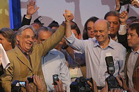 À direita, o ex-governador José Serra (PSDB), cuja candidatura foi lançada em Brasília. O ex-presidente Fernando Henrique Cardoso esteve presente e discursou.