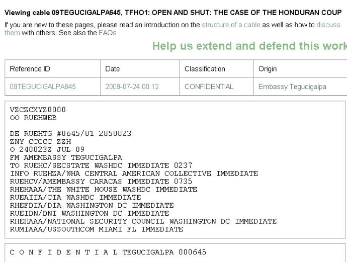 WIKILEAKS SOBRE O GOLPE DE ESTADO EM JULHO, julho de 2009