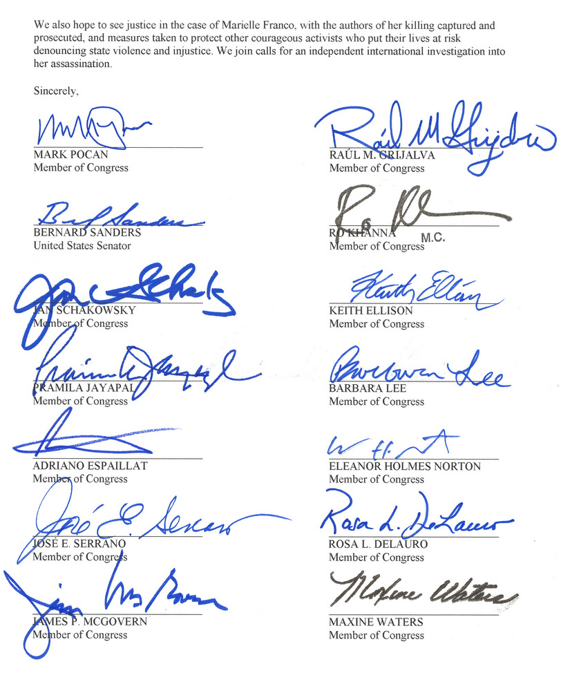 A carta também aponta que membros das “forças de segurança do Estado podem estar implicados” no assassinato de Marielle Franco.