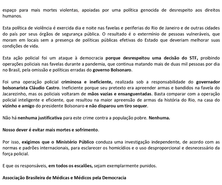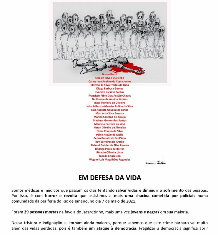 Você escreve Médicos pela Democracia exigem que Ministério Público conduza investigação independente da chacina no Jacarezinho; íntegra 13/05/2021 - 16:13 Tempo de leitura: < 1 min Apoie o VIOMUNDO R$ 5 R$ 15 R$ 35 Qualquer valor Siga-nos no