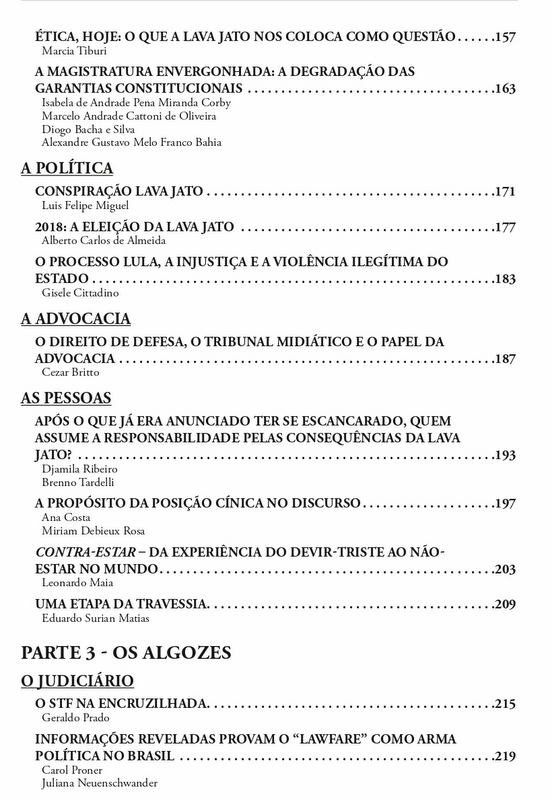 Diz ele: “No jogo amarrado da polarização, o público é levado a escolher entre o atropelo do devido processo legal e a impunidade pura e simples“. Em vez disso, seria “preciso articular uma posição independente na qual se reconheça a gravidade do que foi revelado pela Operação Lava Jato, a atribuição da responsabilidade política de quem governava durante o período e a necessidade de que a investigação e o julgamento dos ilícitos aconteçam dentro dos parâmetros da lei e da Constituição”.