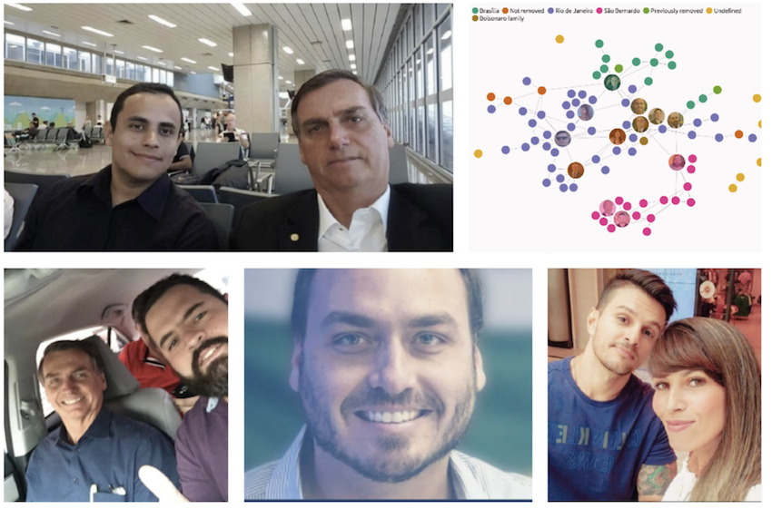 O DFRLab não pôde confirmar os links para Flávio Bolsonaro, mas descobriu que um membro da rede está conectado a um terceiro filho, Carlos Bolsonaro, e outro é empregado por Coronel Nishikawa, também legislador estadual do PSL.