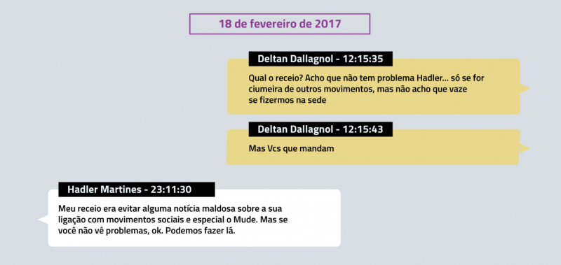 No entanto, depois da derrota na votação das dez medidas, o procurador passou a usar a entidade para defender suas posições políticas, conforme revelou o Intercept Brasil na reportagem “Deltan e Lava Jato usaram Vem pra Rua e Instituto Mude como lobistas para pressionar STF e governo”.