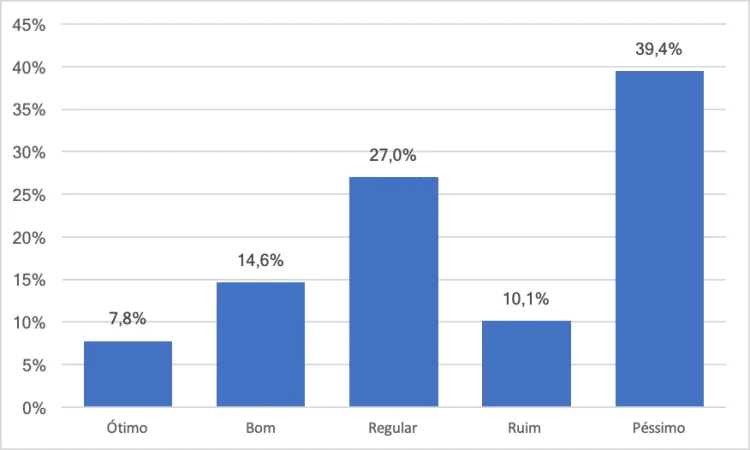 Como vemos, a proporção daqueles que consideram o governo Bolsonaro ótimo se aproxima de 8%.