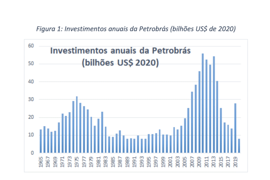 Entre 1965 e 2020, o investimento anual médio da Petrobras foi de US$ 20,13 bilhões. Entre 2009 e 2014, foram US$ 49,80 bilhões por ano.
