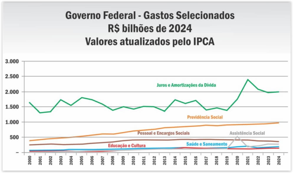 O Brasil vive uma verdadeira esquizofrenia financeira: é o maior pagador de juros do mundo, considerado pelo Fundo Monetário Internacional (FMI) como o campeão mundial de gasto com juros, problema que afeta negativamente a economia do país, as empresas, as famílias e as contas públicas.