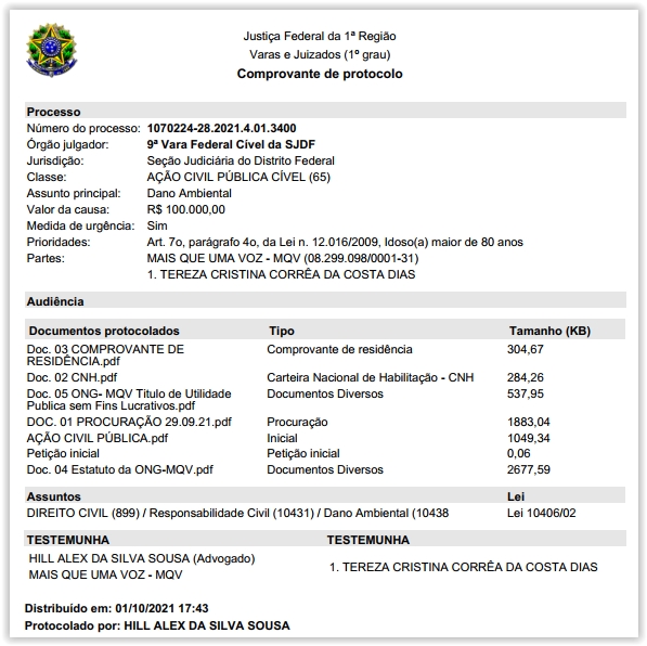 Na ação, protocolada na última sexta-feira, dia 1°, a ONG, com sede em Campos dos Goytacazes-RJ, afirma que o Ministério da Agricultura e o SFB (Serviço Florestal Brasileiro) estão sendo omissos e que buscam deliberadamente se omitir da suas obrigações para favorecer os grandes produtores rurais, em detrimento do meio ambiente.