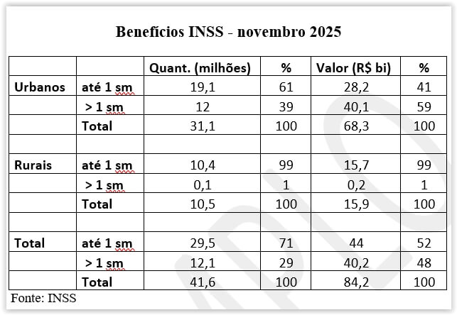 Os mais afoitos na defesa do indefensável do governismo certamente sairão com o argumento de que a maior parte dos benefícios da previdência social são iguais ou inferiores a um salário-mínimo. Isto é verdade. Como se pode perceber na Tabela abaixo, quase 30 milhões de benefícios estão nesta faixa, representando 71% do total.