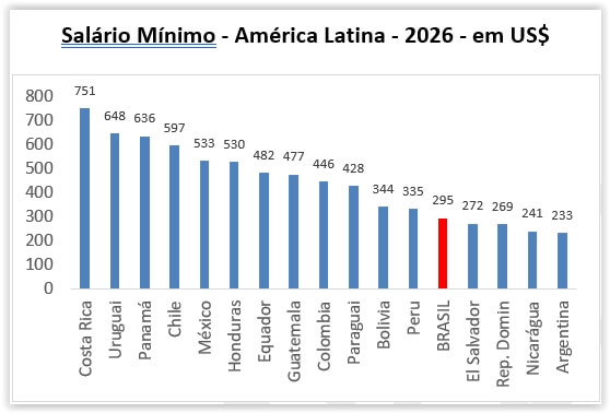 Segundo padrões de comparação em dólar, ocupamos a 13ª posição dentre os demais países da região. Seguimos atrás de nações como Uruguai, Chile, México, Equador, Colômbia, Paraguai, Bolívia e Peru. Uma tristeza!